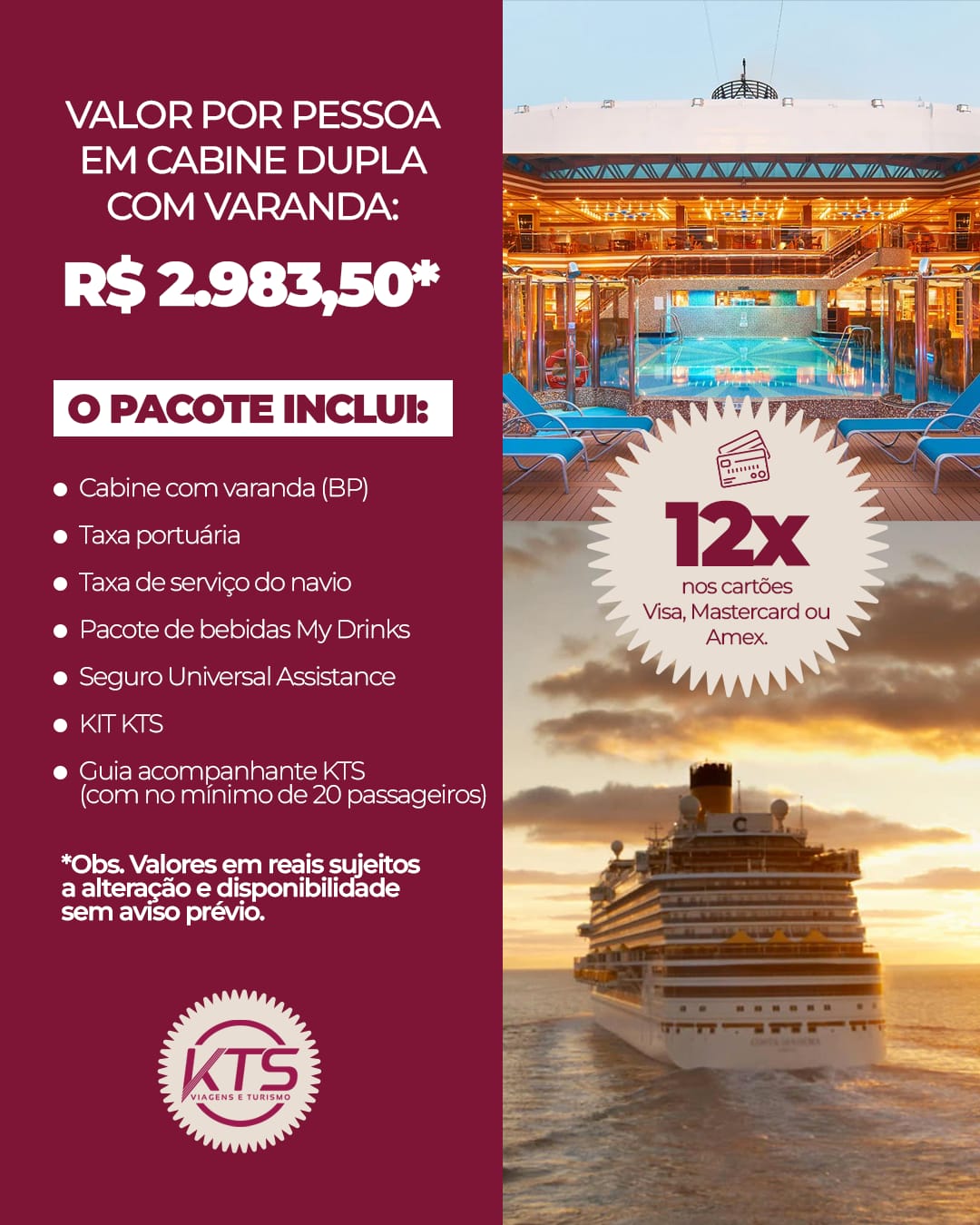 Escolhemos a KTS TURISMO como "nossa" agência de Turismo, pois sempre nos atende com presteza e eficiência a mais de 18 anos!!! Recomendo a Todos!!!